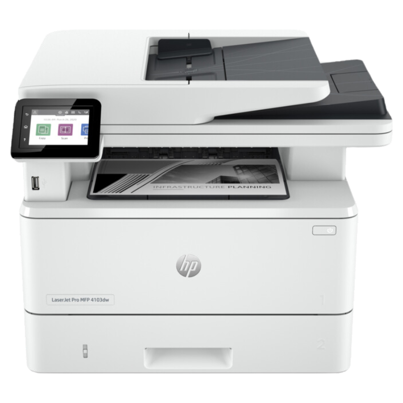 The HP LaserJet 4103DW combines printing, scanning, and copying into one compact and versatile device. Its robust performance makes it ideal for demanding office environments that require reliable and efficient document handling.