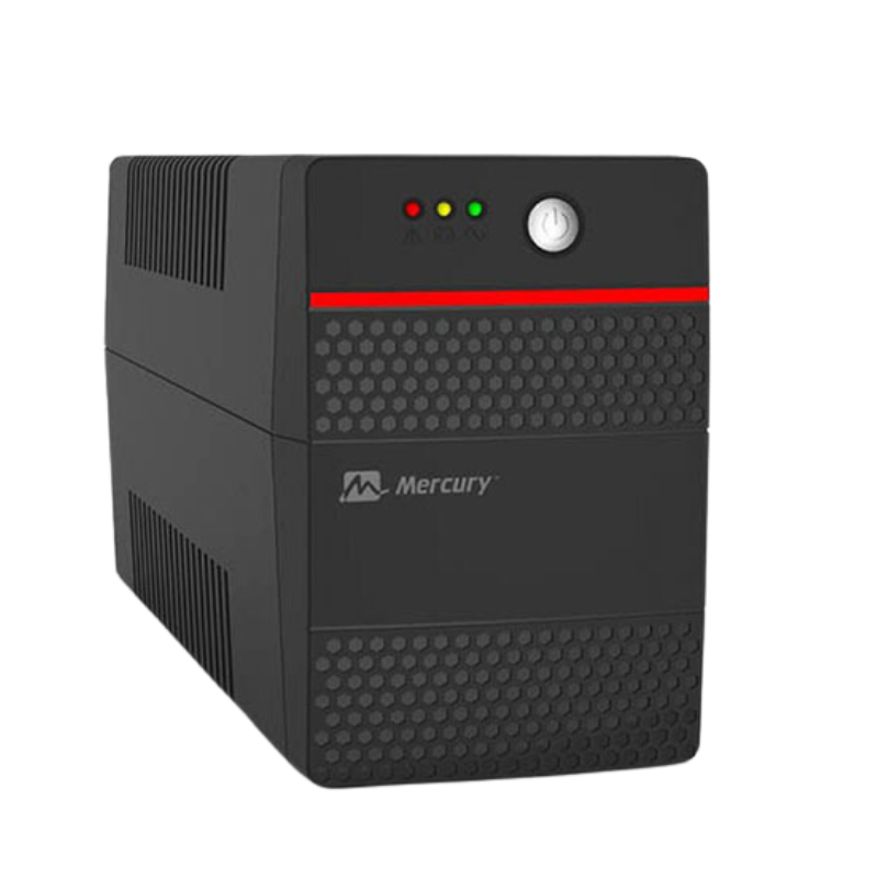 The MERCURY 1050VA UPS offers reliable power backup with a 1050VA/630W capacity. Ideal for home or office use, it features surge protection, simulated sine wave output, and a recharge time of 6 hours to 90% capacity. This UPS ensures stable voltage regulation, with visual and audible alarms to indicate status changes. It also provides short circuit, overload, and battery protection, ensuring your sensitive equipment is safeguarded during power outages.